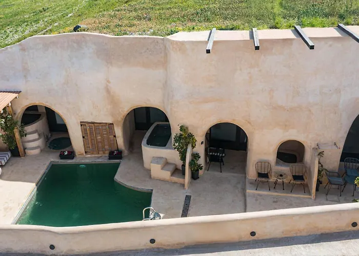 Hotellet Anaktos Cave Houses Santorini Island, som finns 1 km från "Megaro Gyzi" Museum i Santorini Island, erbjuder ett arkeologiskt museum. Detta hotell ståtar med en säsongsöppen utomhuspool, hydromassagebadkar, utomhusbassäng och terrass.